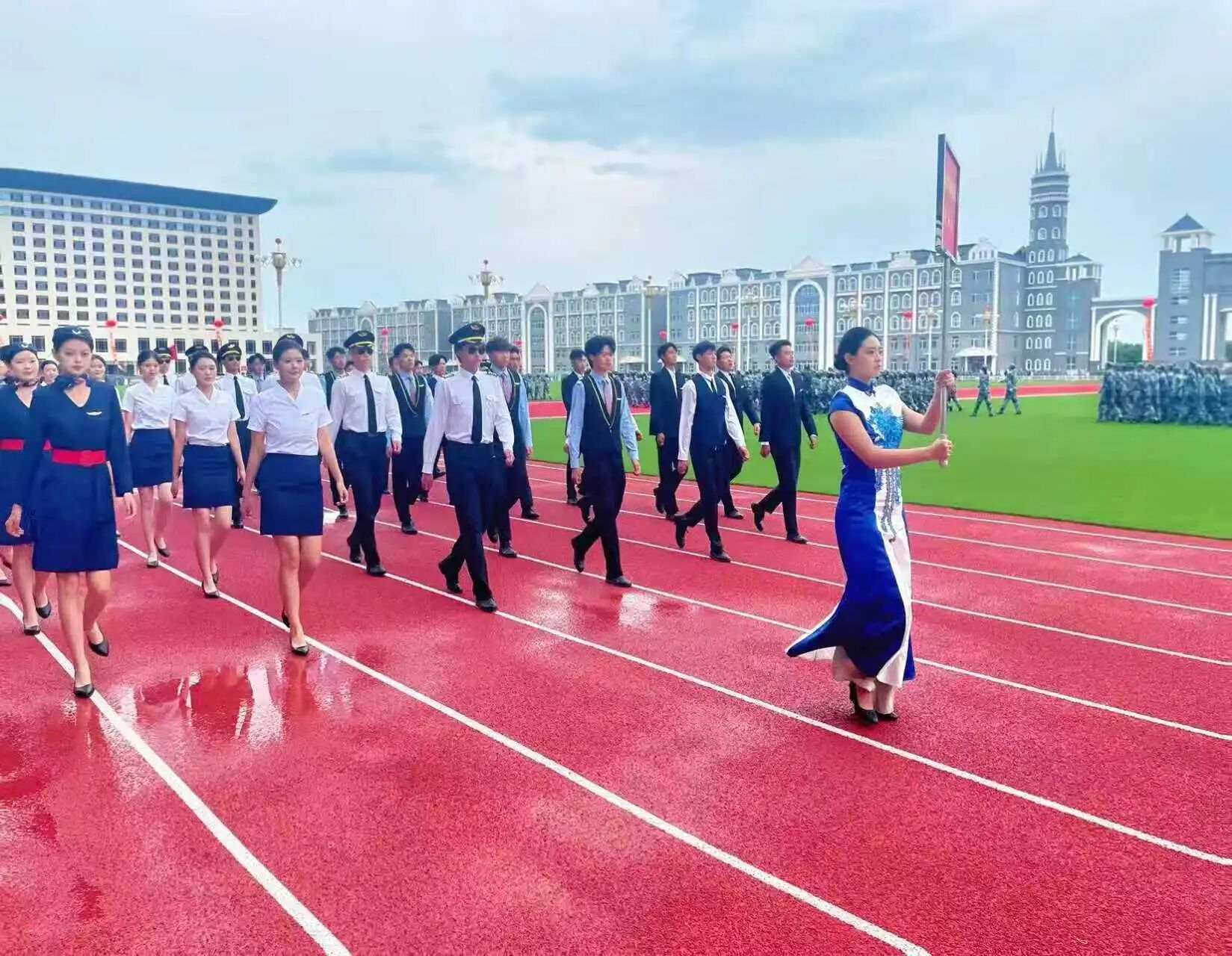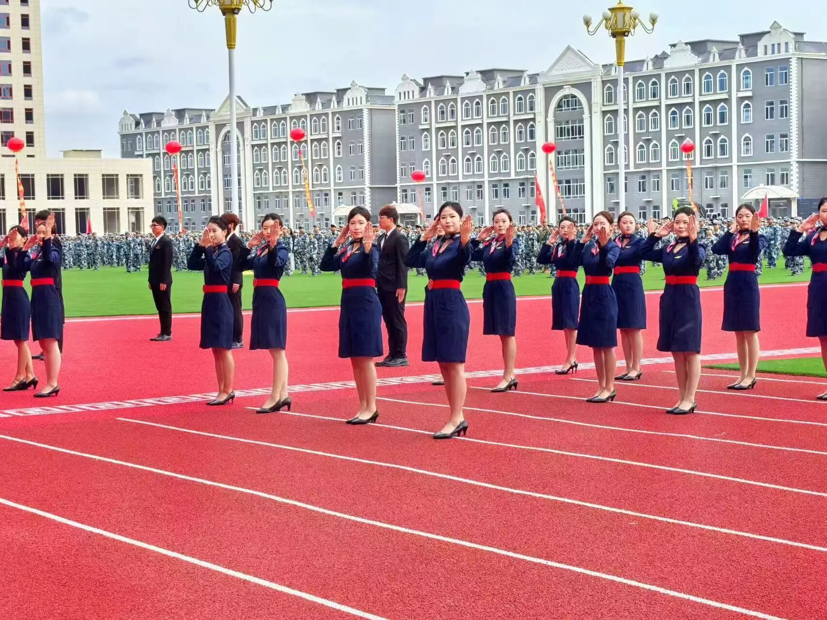 其中,国际航空旅游学院的学子们成为汇演中的一道亮眼风景线。学院礼仪队身着专业服饰,迈着优雅规范的步伐登场,举手投足间尽显礼仪素养,将民航类、旅游类、交通类、会展类专业的特色魅力展现得淋漓尽致;精英连队员更是以挺拔的姿态、坚定的眼神与整齐划一的动作,彰显出过硬的纪律作风与团队凝聚力。此外,国际航空旅游学院7个新生连队也全程参与汇演,在方队展示中,同学们精神抖擞、斗志昂扬,紧跟节奏、步伐一致,用实际行动诠释着“不怕苦、不怕累”的军训精神,展现出学院学子良好的精神风貌与集体协作能力。