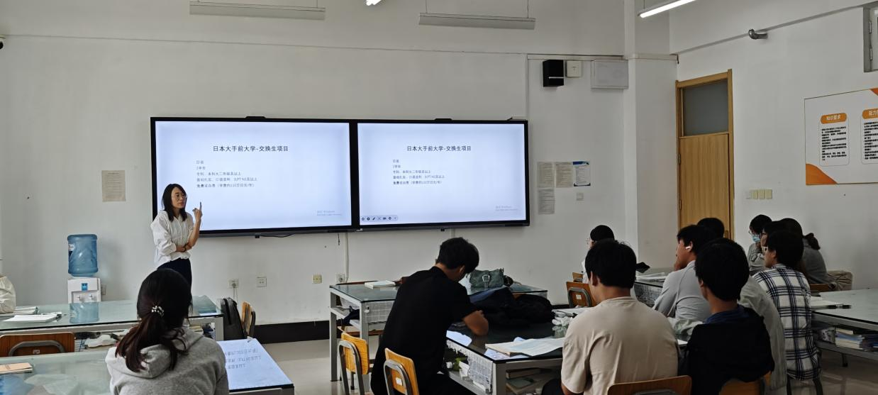 为拓宽学生国际视野,提供优质海外学习平台,国际航空旅游学院外事负责人纪施莹老师为24会展班的学生举办了一场关于日本大手前大学留学项目的专题宣讲会。会议系统介绍该校的办学历史、校区特色、留学项目及就业支持服务,为学生赴日留学提供了清晰指引。