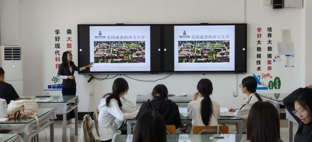 宣讲会上,纪老师首先介绍了威诺纳州立大学的基本情况:该校成立于1858年,位于美国明尼苏达州,是一所享有盛誉的综合性公立大学。它连续多年被评为“美国中西部最佳大学”和“性价比最高的大学”之一,以其高质量的教育、安全的校园环境和丰富的校园活动而闻名。