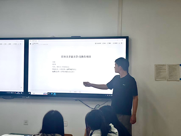 宣讲会上,外事部部长商宝晔同学通过清晰的逻辑与生动的案例,全面展示了大手前大学的国际化办学特色与优质的校园资源。他重点解读了同学们关心的国际生申请条件、课程选择以及在日学习生活保障等核心问题,使在场学生对海外学习生活形成了直观而积极的认知。