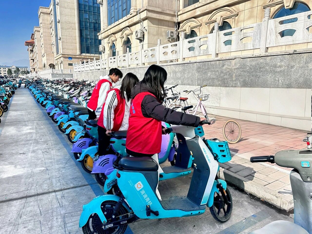 活动现场,同学们热情高涨、分工明确。大家有序分组,穿梭在校园自行车停放区,弯腰扶正歪斜车辆、调整车把对齐标线、规整车轮排列方向,将原本杂乱停放的自行车一一归位。从俯身查看间距到合力搬运车辆,从规划排列秩序到清理周边杂物,同学们始终以认真负责的态度投入劳动,用双手让原本拥挤无序的停车区变得整齐划一,成为校园里一道亮眼的文明风景线。