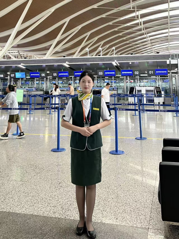 大家好,我是赵雪婷,河北外国语学院国际航空旅游学院2023届空中乘务专业毕业生,现就职于春秋航空公司,担任地面服务值机员一职。