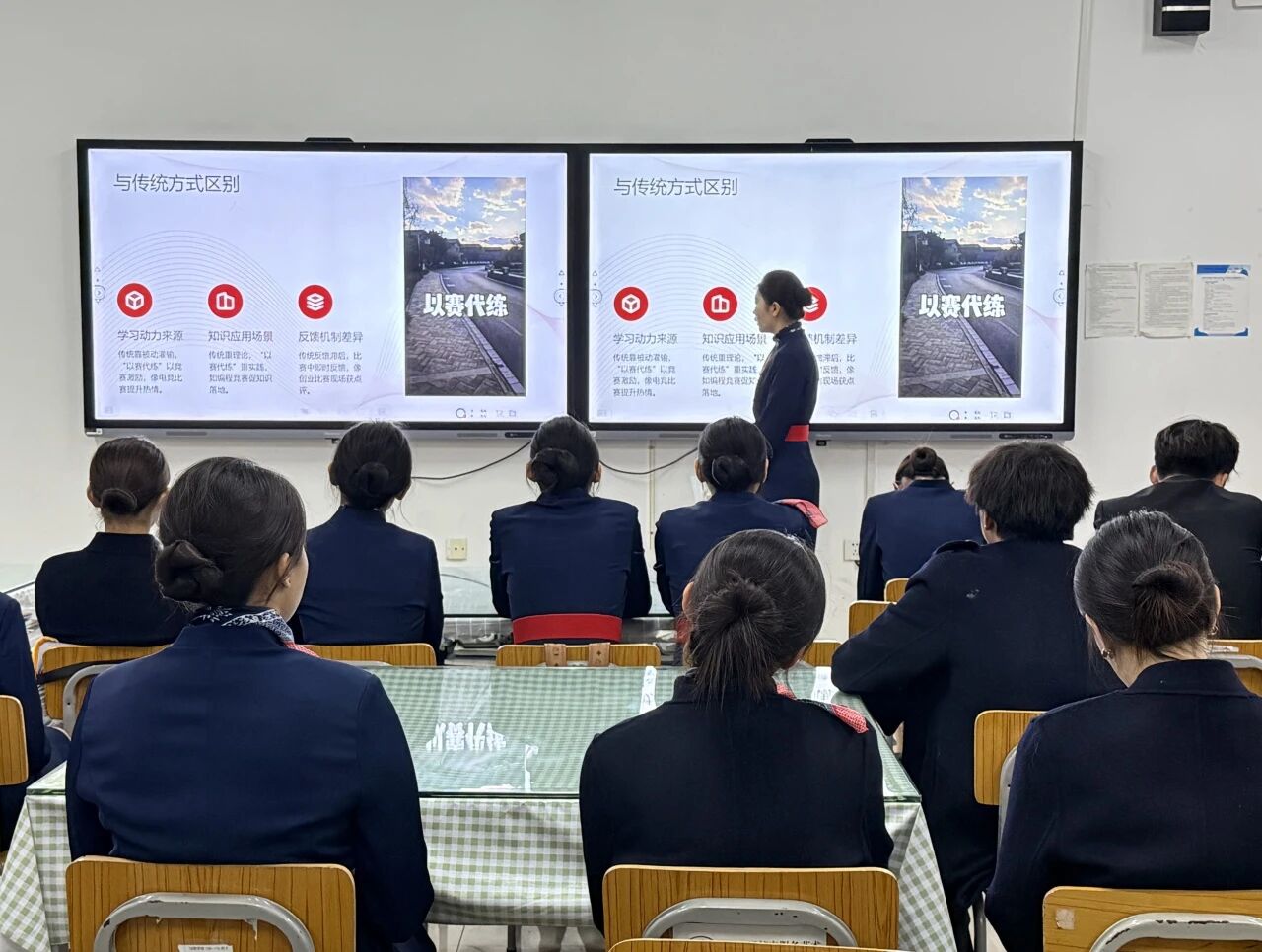“以赛代练、以赛促学”专题结合不同专业特点,在党团主题教育课上与学生分享专业有关赛事并邀请学生分享备赛经验,让学生了解备赛过程,同时也可巩固专业知识、锤炼实操技能,有效激发了主动学习的积极性与创造性,形成“以赛促学、以赛促练、以赛促优”的良性循环,切实提升了学生的实践应用能力。
