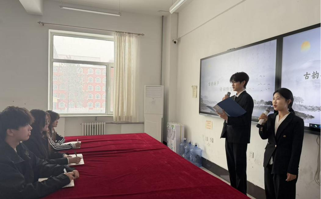 在文化传承与创新的时代浪潮中,为弘扬中华优秀传统文化,近期河北外国语学院国际航空文旅学院艺术团于7号教学楼217教室成功举办 “古韵新声,诗词传唱”唱歌活动,以流行方式演绎经典古诗词。