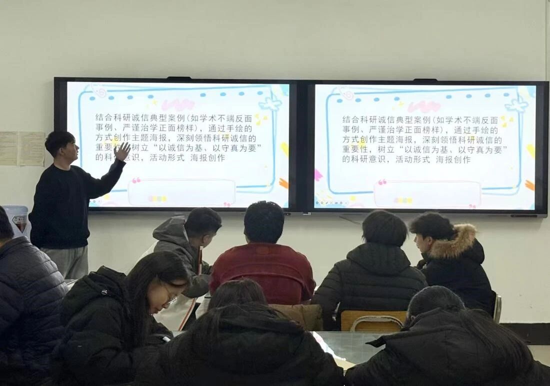 比起单纯讲不能做什么,让学生自己找案例、画海报,是让他们主动认同应该做什么。25级新生正处于学术认知的起步阶段,以实践活动来替代单向宣讲,能让科研诚信从“课堂知识点”变成“自己认可的准则”。本次活动同样也说明了科研诚信教育要从入学抓起,活动赋予的实践意义生动且有效。