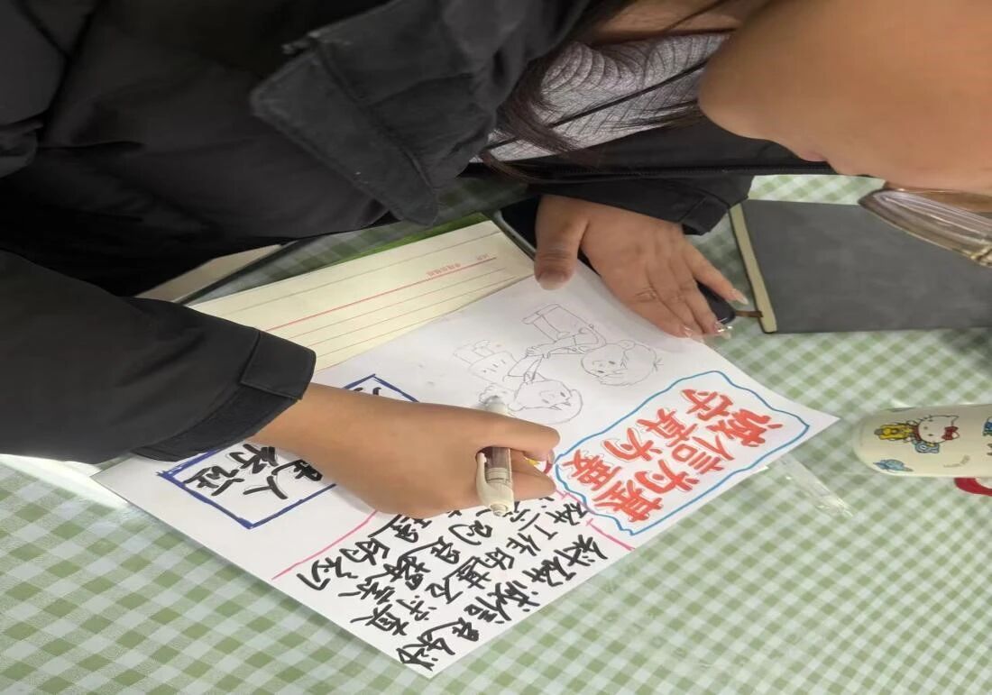 为强化新生科研诚信意识,筑牢学术道德根基,12月22日,河北外国语学院国际航空文旅学院在7号教学楼展开了一场以科研诚信建设为主题的海报创作活动,本次活动面向学院25级新生,以手绘海报创作的形式,将科研诚信教育融入实践创作。从笔尖绘就的海报,到心底筑牢的准则,用生动的形式诠释“科研诚信是学术生命线”的深刻内涵。