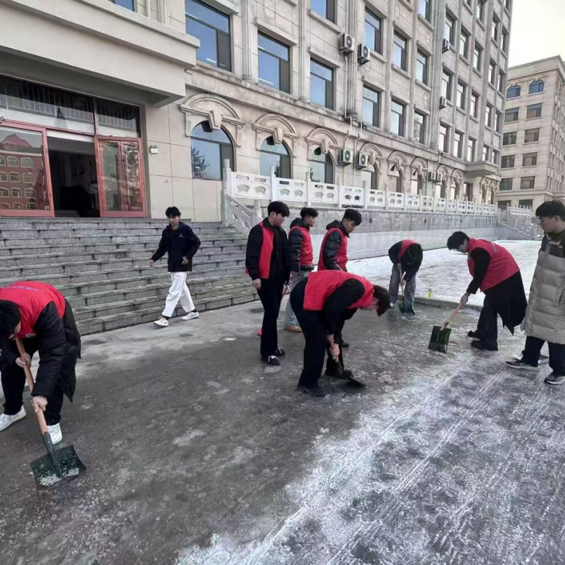 经过一番努力,校园主干道、教学楼入口及黑油松周边等重点区域的积雪被清理干净,为师生们开辟出一条条安全通畅的“暖心路”。此次铲雪活动,不仅展现了国际航空文旅学院国旗班学子吃苦耐劳、甘于奉献的优良作风,更彰显了河外青年强烈的责任担当和团结协作精神。未来,国旗班将继续秉持初心,积极投身各类志愿服务活动,为建设美丽、安全、和谐的校园贡献青春力量。
