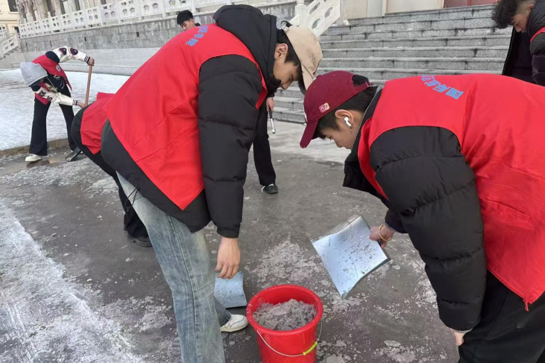安全护行 情暖校园——河北外国语学院国际航空文旅学院国旗班开展铲雪志愿活动