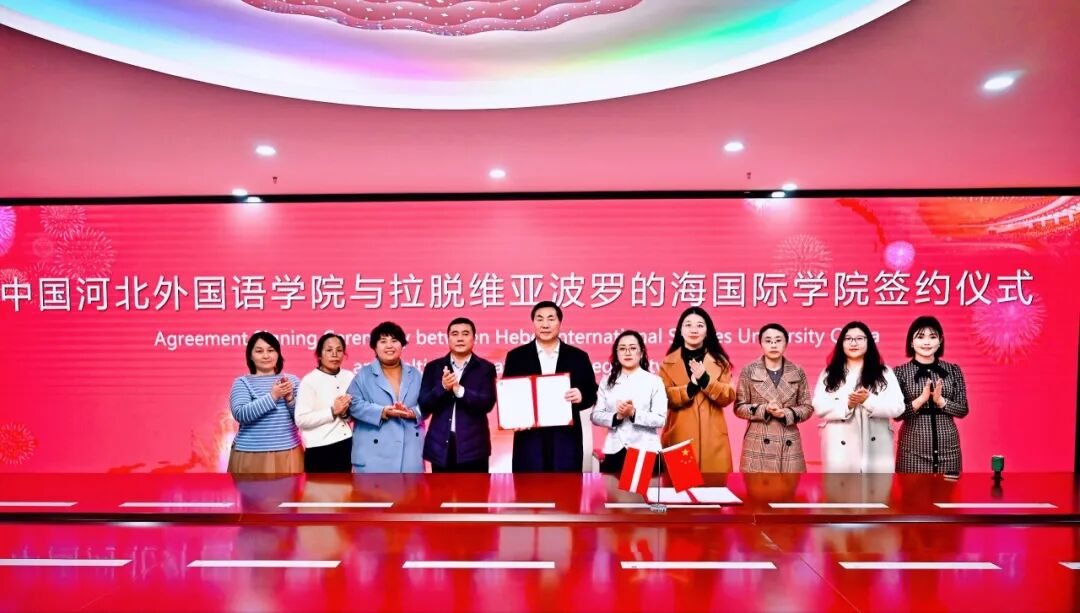 2025年3月14日,河北外国语学院董事长、校长孙建忠院士与拉脱维亚波罗的海国际学院代表共同签署校际合作协议,标志着两校正式建立合作伙伴关系,为双方在学生交流、师资互访及教学科研等领域的深入合作开启了新篇章。