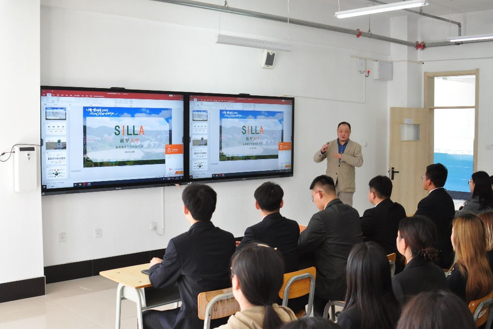 2025年4月2日,韩国新罗大学国际交流处副处长吴起涛教授受邀在我校福远楼612教室举办专场宣讲会,重点介绍该校专升本、本升硕合作项目。国际航空文旅学院22名学生积极参与活动,深入了解留学政策与升学机遇。此次宣讲会为我院学生拓宽了升学渠道,也为两校进一步开展师生互访、课程共建等合作奠定基础。