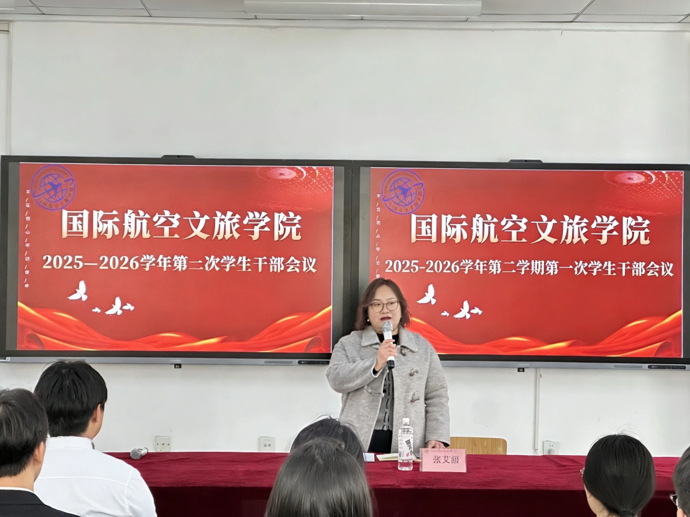 为进一步明确学生干部职责使命,强化责任担当、提升工作效能,凝聚团队奋进力量,国际航空文旅学院于7号楼102~104教室召开2025—2026学年第二学期第一次学生干部会议。