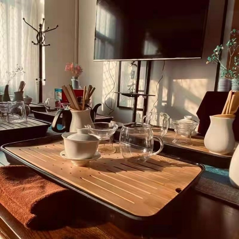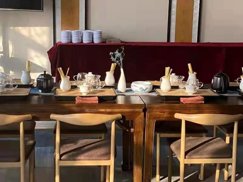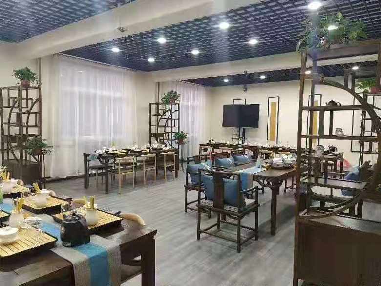 茗悠茶空间工作室是一个集教学、实训、职业技能鉴定、培训等内容为一体的多功能实训室,在满足教学实习的同时,还可开展茶艺师考证相关培训。茗悠茶空间工作室设备配置齐全,拥有榆木茶桌、各类茶具、博古架、多媒体教学等设备,是一个完备的茶艺工作室。