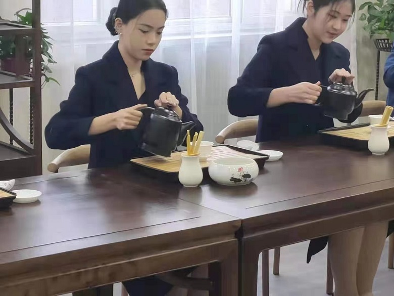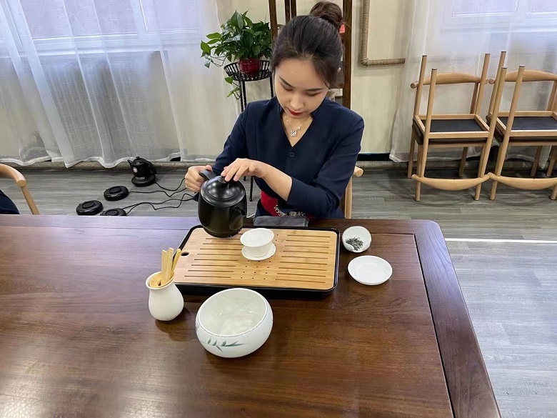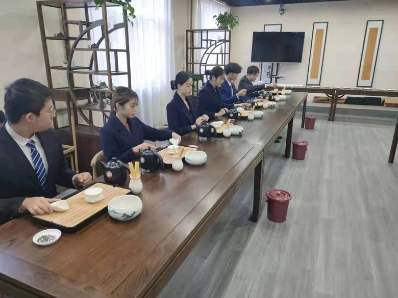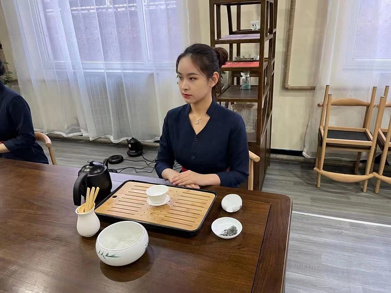 学生们进入茶艺室首先对老师进行行礼,然后在经得老师的同意后端坐并开始考试,他们以十足的认真来验证自己新阶段的茶艺学习成果,完成自己在茶艺上的完美进阶,最后结束时行礼并虚心接受老师的建议。