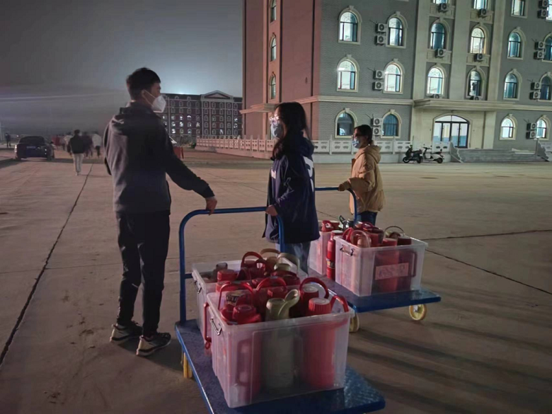 后勤保障组的老师,不辞辛苦的为同学们打水,采购所需生活用品。不仅如此,他们关心学生的困难,耐心安抚学生的紧张情绪,及时为同学答疑解惑。